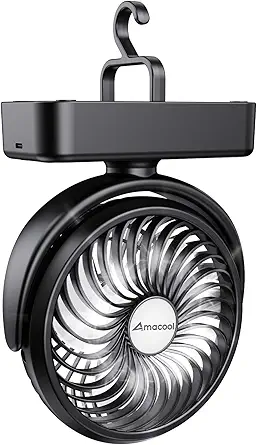 It also supports USB operation via laptop or car charger, making it perfect for both indoor and outdoor use. With 3 fan speeds, ultra-quiet operation, and 360° manual rotation, it efficiently circulates air in every direction for a cooler, more comfortable space. Equipped with 12 bright LEDs and 3 brightness settings, it provides powerful illumination for reading or lighting up your campsite. Compact at only 2.4 x 5.3 x 7.1 inches and weighing just 11.3 oz, this fan-light combo is easy to carry and saves space in your backpack by replacing multiple devices in one compact unit.
