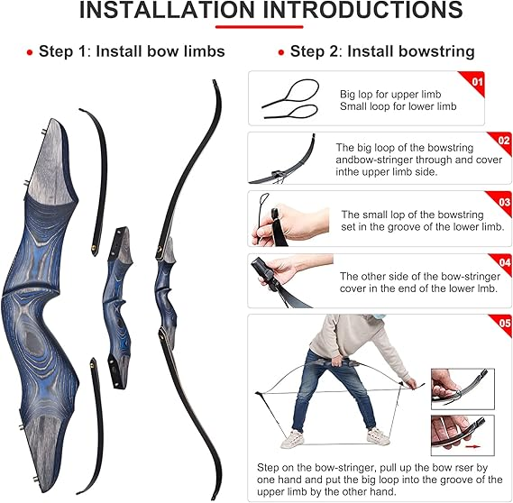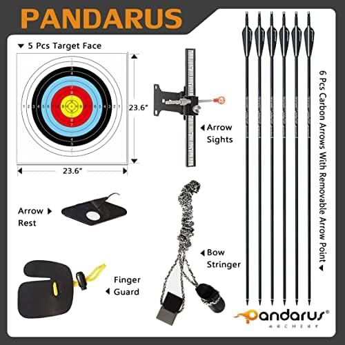 The package includes everything you need to get started: 6 arrows, an arrow sight, target paper, arrow rest, bow stringer, finger and arm guards, bowstring, and a recurve bow case. Designed with removable limbs, it’s easy to disassemble and store for travel or safekeeping.